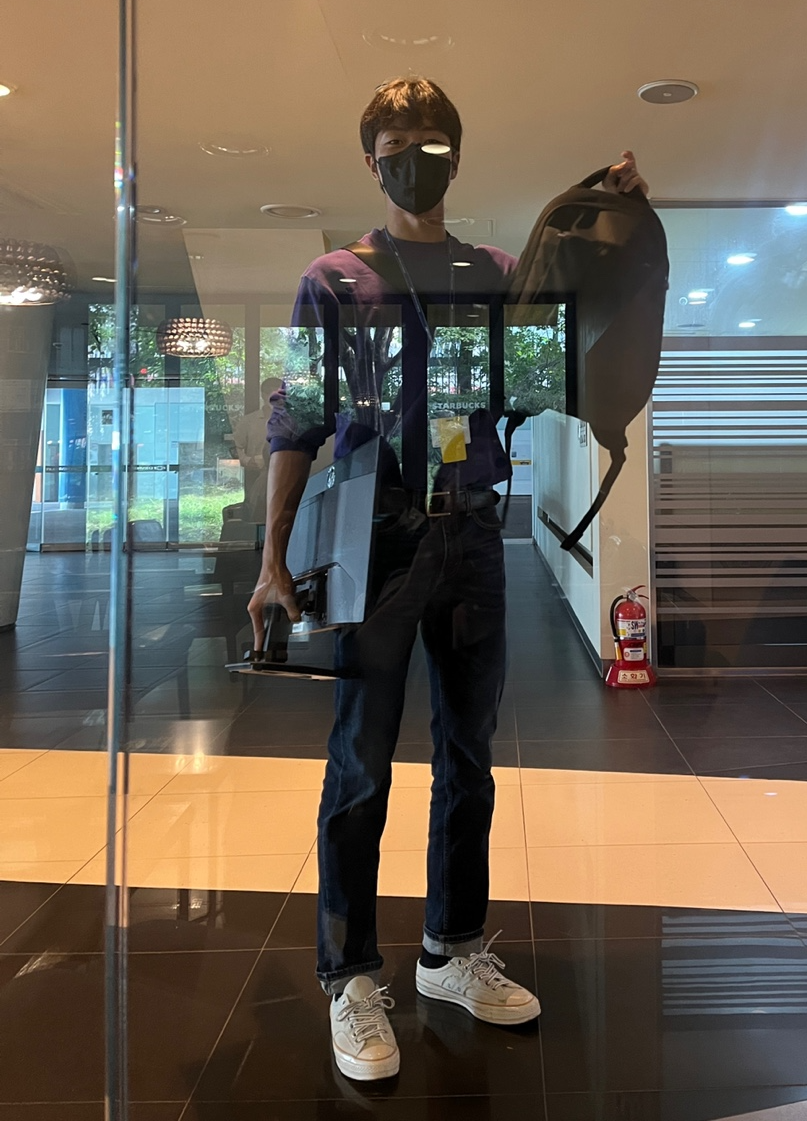 마지막 모니터와 노트북이 든 가방을 반납하는 저의 모습,,,,