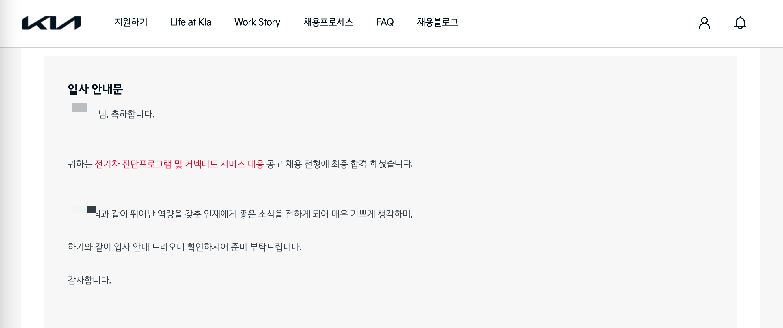 그만큼 면접을 싫어하던 제가 6개월동안 회사를 다니며 정신적 충전과 자신감을 되찾으면서 다시 기아에 도전을 하게 된거죠!